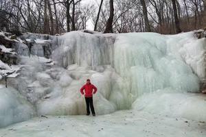 1、早上9点左右到达歪头村洪峰山脚下的大石沟冰瀑拍照游玩。